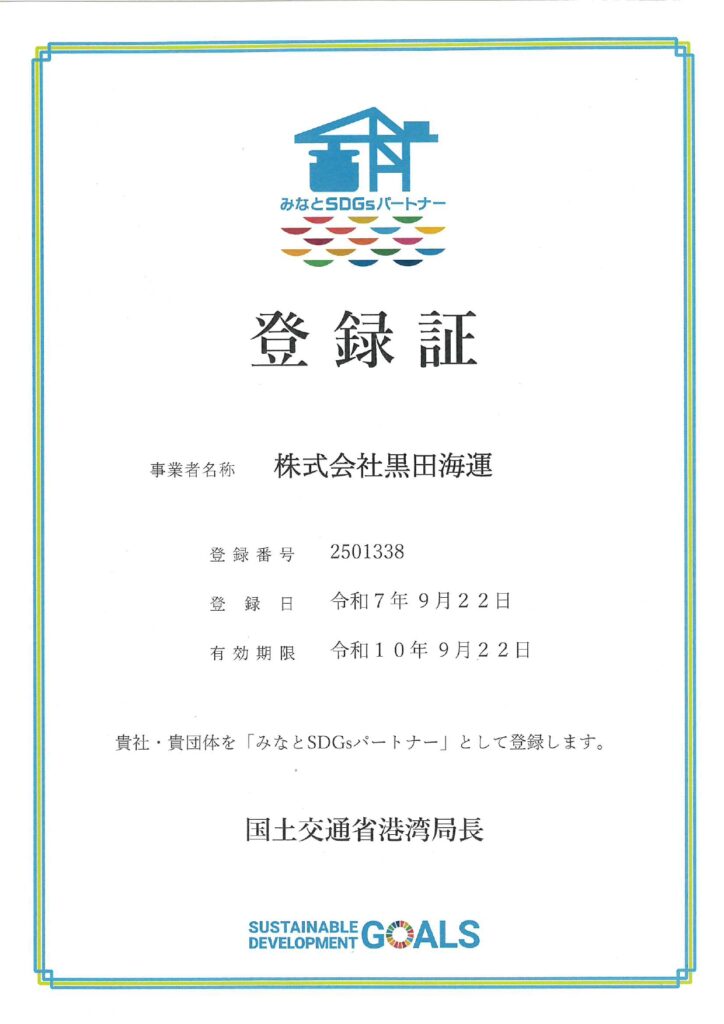 「みなとSDGsパートナー」第13回新規登録事業者の認定を受けました。